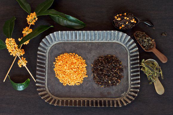 时令食材:桂花 桂花又名木犀。《本草纲目》即云:“桂花性温,生津,辟臭,治风虫牙痛。”桂花可依花朵颜色分为金桂、银桂、丹桂,此外又有长期可开花的四季桂。 所有的桂花瓣均可用作糕点膳食,加入酒中又可以酿制桂酒桂浆,汉唐时期已是宴飨要品。桂花糖和桂花酱至今仍是江南常见的食品。将新鲜的桂花瓣用冷盐水洗过滤干,加以层层白糖密封腌制,其中亦可调入梅卤或姜片。制成的桂花糖令人齿颊留香,无论何时在需要的食物中加入一勺,芬芳氤氲的是整个秋天的甜美记忆。