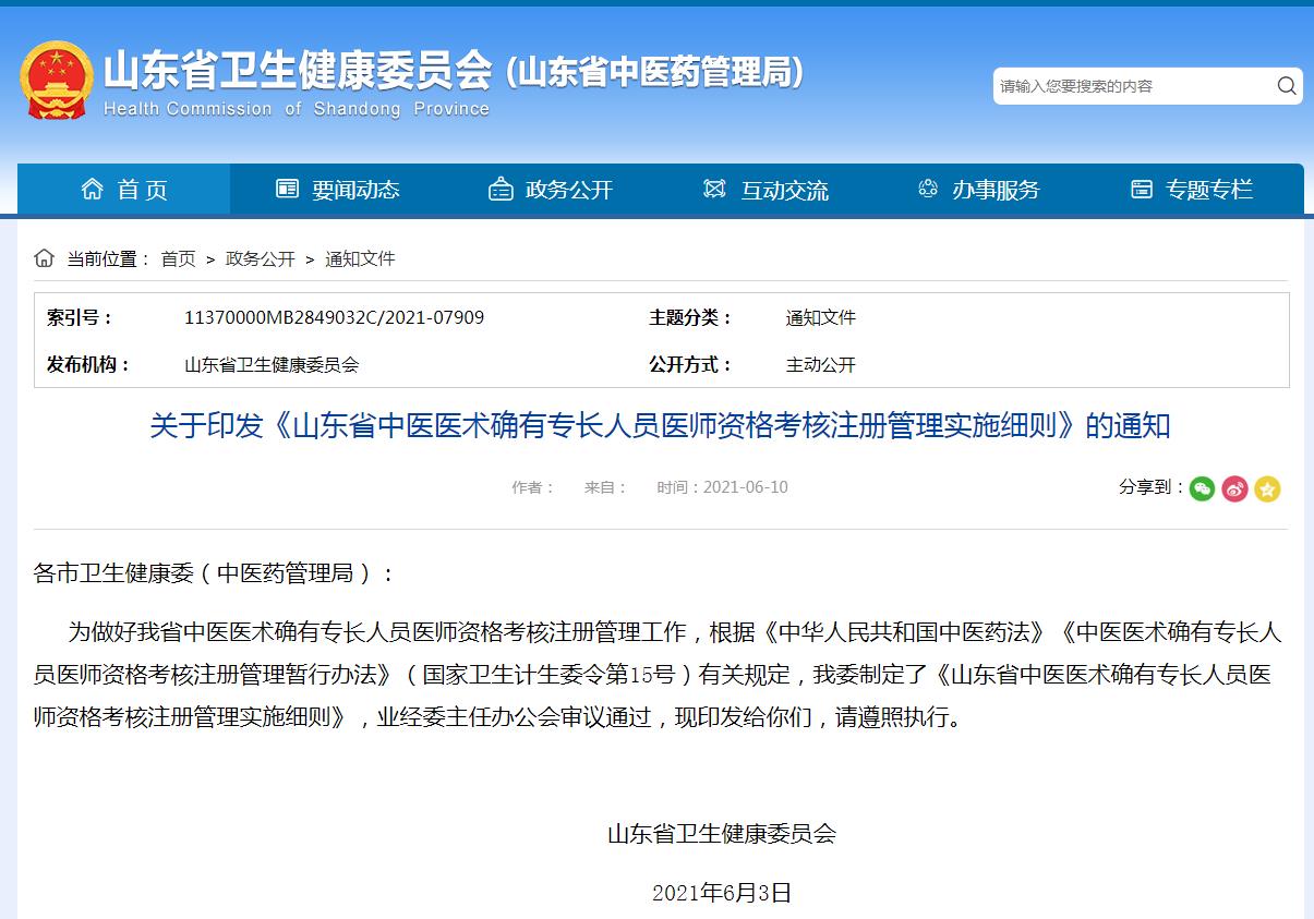 山东省中医医术确有专长人员医师资格考核注册管理实施细则